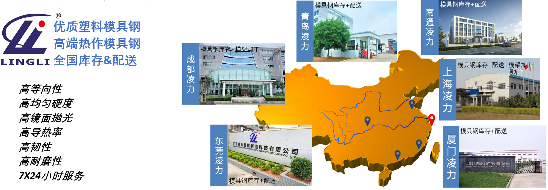 上海凌力特殊鋼發(fā)展有限公司是工模具鋼行業(yè)的一站式集成供應(yīng)商,為工模具鋼行業(yè)提供優(yōu)質(zhì)的模具鋼材,中大型非標(biāo)模架、模具數(shù)控加工和檢測(cè)、深孔加工、熱處理、表面處理服務(wù)。目前,凌力在上海、山東、四川、福建、廣東、江蘇均設(shè)立模具鋼庫(kù)存和配套加工,員工近500人,能快速為客戶提供售前、售中和售后等技術(shù)服務(wù)。